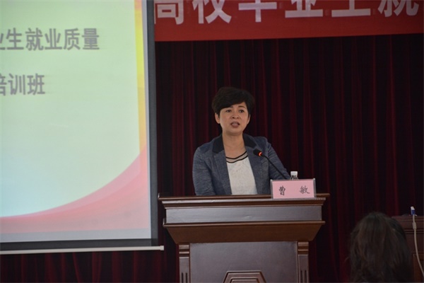 湖南省大中专学校学生信息咨询与就业指导中心主任曹敏开班讲话。