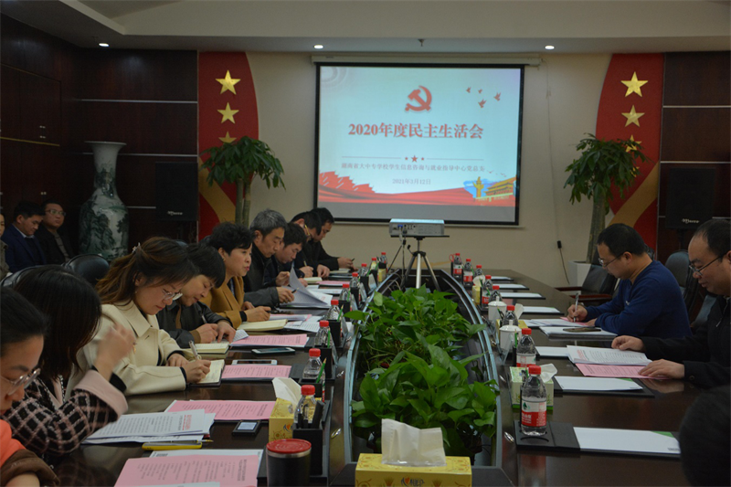 按照厅委统一部署要求,2021年3月12日,省大中专学校学生信息咨询与就业指导中心党总支召开2020年度民主生活会,中心党总支书记、主任曹敏主持会议并带头作自我检查,纪检委员、副主任夏学军,宣传委员、副主任曾静参加会议并作个人对照检查。驻厅纪检监察组第三纪律审查处处长彭灿辉、工委巡察办(机关纪委)一级主任科员向伟到会指导。中心党员领导干部、员工党员列席会议。