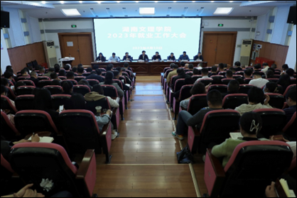 4月10日下午,学校2023年就业工作大会在图书馆多功能报告厅召开。学校全体在家党政班子成员出席会议,会议由党委副书记龚卫明主持。