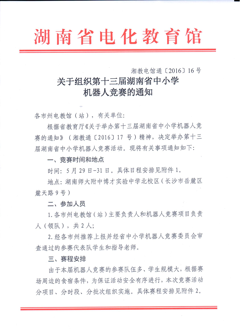 关于组织第十三届湖南省中小学机器人竞赛的通知