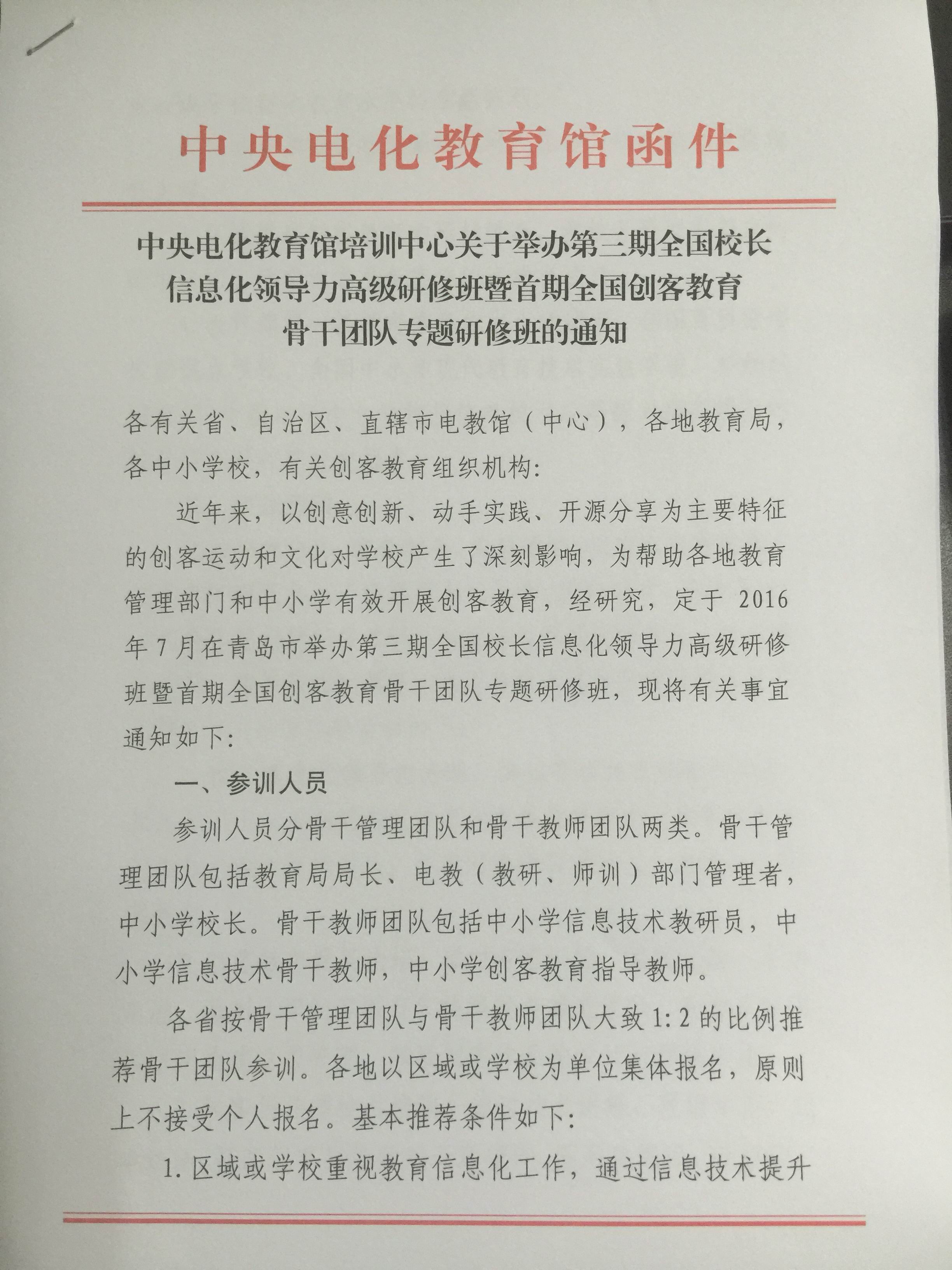 中央电化教育馆培训中心关于举办首期全国创客教育骨干团队专题研修班的通知