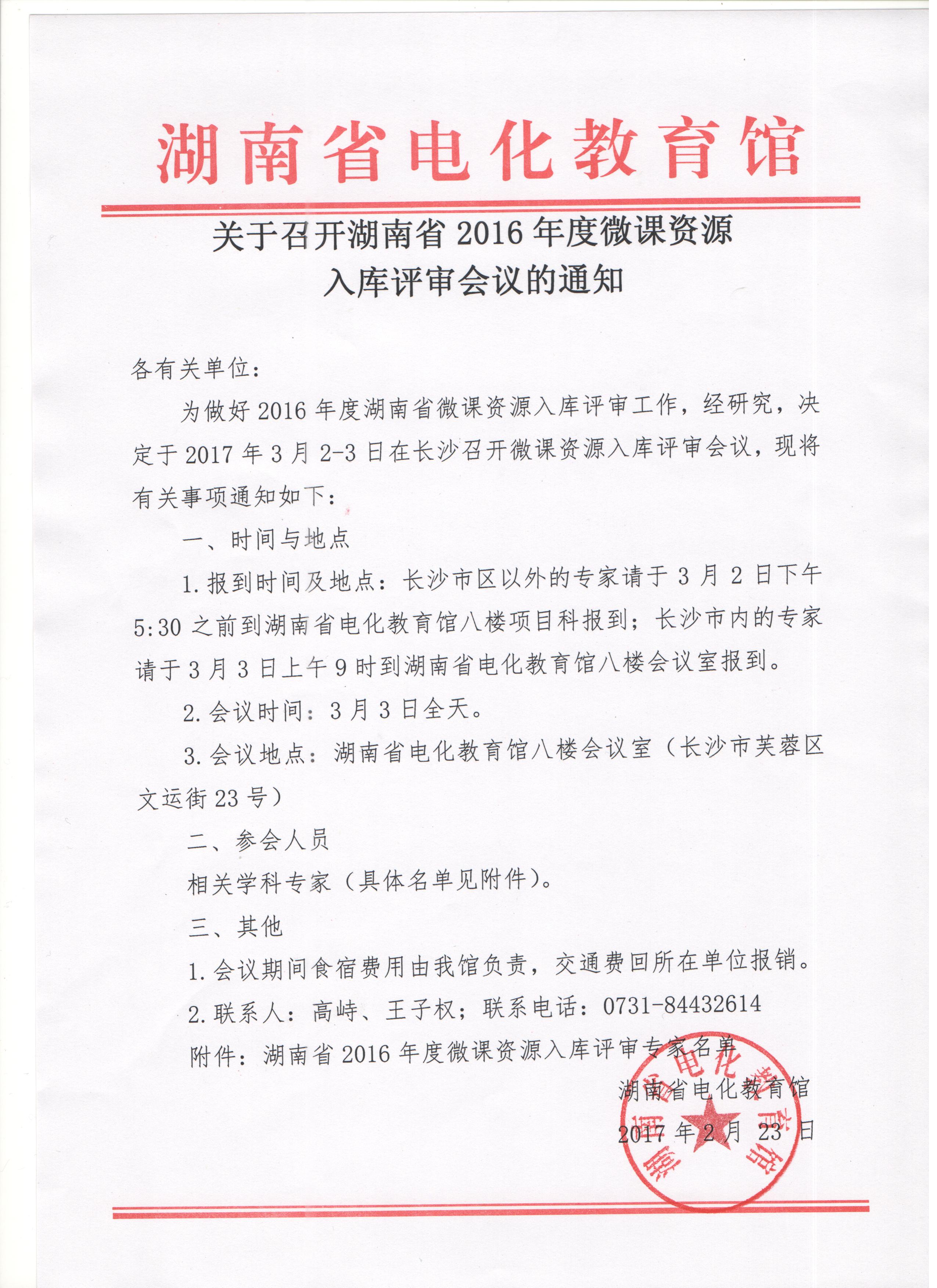 关于召开湖南省2016年度微课资源入库评审会议的通知