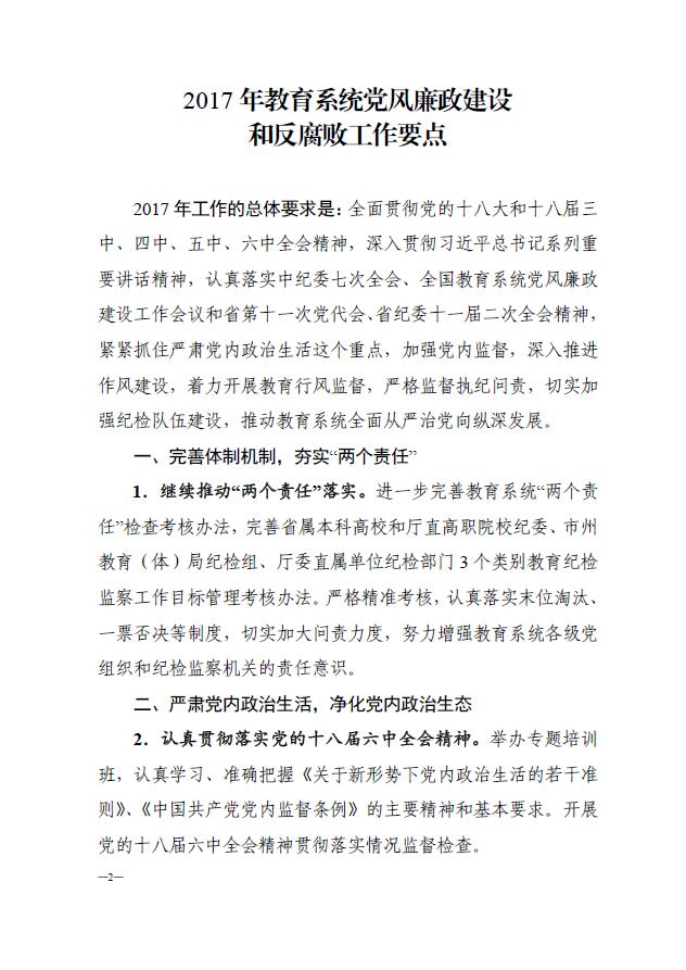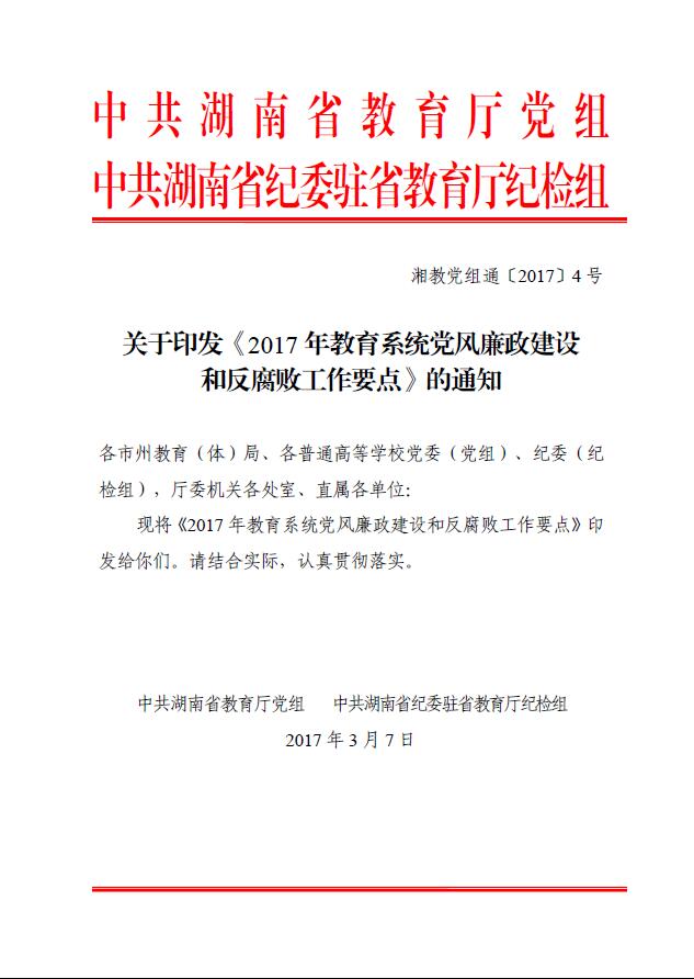 关于印发《2017年教育系统党风廉政建设和反腐败工作要点》的通知