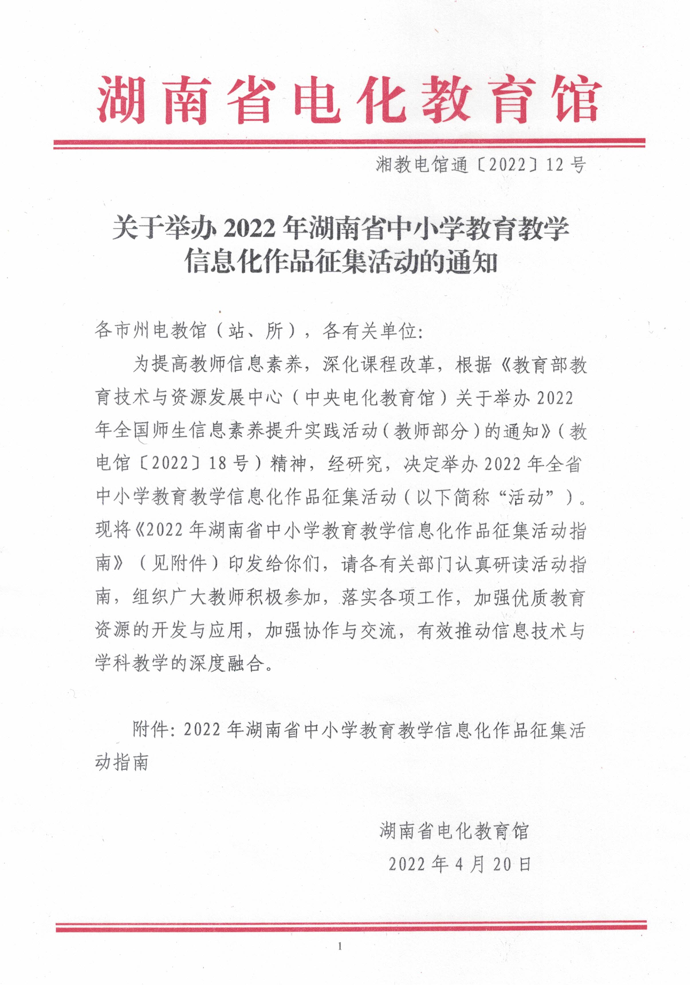 关于举办2022年湖南省中小学教育教学信息化作品征集活动的通知