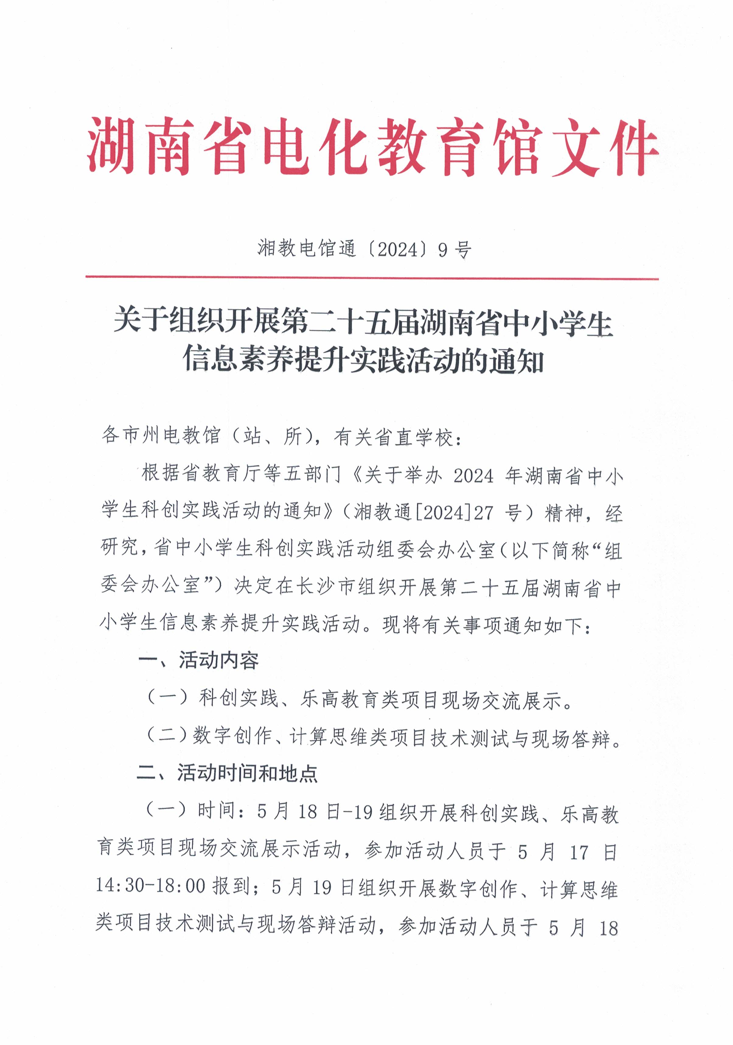 关于组织开展第二十五届湖南省中小学生信息素养提升实践活动的通知