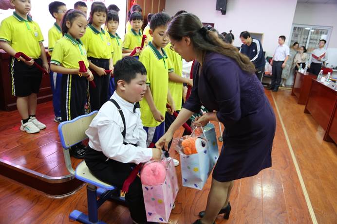 “每个孩子都是天使,每一朵花儿都值得呵护,每一个蓓蕾都将绽放……”长沙县龙塘小学校长彭志国饱含深情地介绍了学校坚持全纳教育思想,数年如一日开展随班就读所付出的努力和取得的成绩,并对社会各界长期以来对学校及特殊孩子的关爱表示由衷感谢。