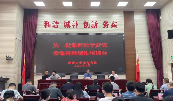 为加快推进我省第二批中小学课程资源建设与应用工作,2022年8月5日,湖南省电化教育馆举办了课程教学资源微课视频制作专题培训班。此次培训采取线上线下相结合的形式,各承建市州电教部门(含6所省直有关学校)分管教学资源建设工作的负责人及指导所在地区(学校)课程教学资源微课视频录制工作的信息技术专业人员、参与课程教学资源建设工作的学科团队全体成员参加学习,馆领导李陆军出席并讲话。