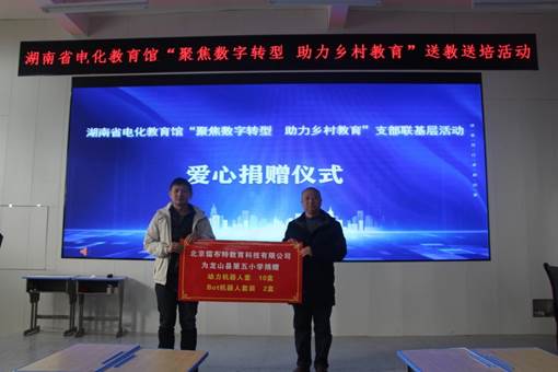 12月22日,省电化教育馆到湘西自治州龙山县第五小学开展“聚焦数字转型 助力乡村教育”支部联基层活动,为龙山县送教送培和捐赠学生科创设备。省电教馆党总支委员、副馆长李陆军一行12人,省教育厅驻龙山县尖岩村工作队队长刘彦奇,湘西州教育科学技术院院长宋泱,龙山县教体局党组书记、局长向荣,长沙市芙蓉区支教队教师,龙山县城区小学教师代表等100余人参加活动。