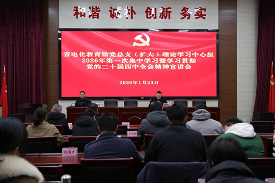 为推动党的二十届四中全会精神落地生根,引导全馆党员干部统一思想、凝聚共识,1 月 23 日下午,省电化教育馆在八楼多功能厅举办党的二十届四中全会精神专题宣讲会。本次宣讲会特别邀请省委省委宣讲团成员、改革办副主任唐超雄作专题报告。省电化教育馆党总支书记、馆长刘吉延主持会议并讲话,全体在职党员、干部及离退休党支部部分党员参会。