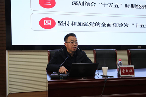 宣讲中,唐超雄紧密结合习近平总书记在党的二十届四中全会上的重要讲话和《中共中央关于制定国民经济和社会发展第十五个五年规划的建议》,从充分认识党的二十届四中全会的重要意义、准确把握“十五五”时期在中国式现代化进程中的重要地位、深刻领会“十五五”时期经济社会发展的战略任务和重大举措、坚持和加强党的全面领导等四个方面,对党的二十届四中全会精神进行了深入宣讲和系统阐释,并从贯彻落实全会精神、推动单位事业高质量发展等方面提出指导意见。