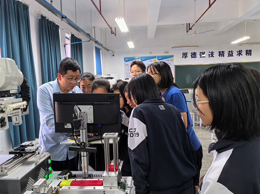 在智能制造学院实训室,师生们依次参观了激光实训室、数控加工中心等处。先进的激光切割技术、精密的数控加工设备,让同学们惊叹不已,激发了他们对智能制造领域的浓厚兴趣。