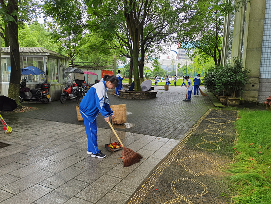 学生们在清扫校道