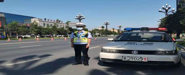 上午9点,学生已正式开考,县城各大路口,交警队同志恪尽职守,严肃认真的指挥交通,维护秩序,考点外负责执勤的警察,戴着口罩,在烈日炎炎下笔直站立,他们用自己的行动为考生站好了一班岗。
