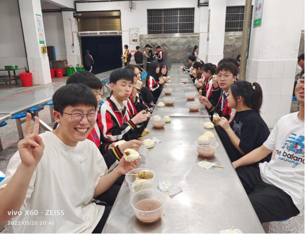 每晚8:40,高三学子三五成群奔向灯火通明的食堂,有序排队购买夜宵。夜宵类多味好,物美价廉,学生们吃得开心、家长们心里放心。一碗热粥,蒸腾的是学习生活的烦恼;一份蒸饺,包含的是有容乃大的格局。洋溢在高三学子脸上的,是青春灿烂的笑容,充盈在莘莘学子心中的,是学校暖心的关怀。