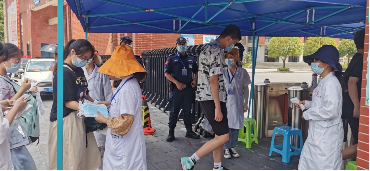 6月7日,2022年考高开始。为切实加强高考期间疫情防控工作,实现“平安高考”“健康高考”,吉首市教体局联合市疾控中心组建成了疫情防控及体温检测组,在考前、考中全程驻守考点,严守高考第“疫”关,助力高考,为梦想保驾护航。