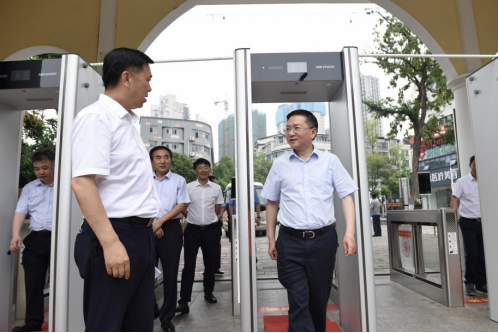 周代惠一行实地查看了各考点考务室、监控室、广播室等场所,详细了解考场准备及周边环境保障情况。今年全省统一实行智能安检门+人工安检“双安检”,严防考生和涉考人员携带通讯设备或其他作弊工具进入考场和考试工作场地,目前各考点入口智能安检门已安装完毕。在相关考生食宿点,周代惠一行仔细询问了考生用餐菜品采购及食宿卫生消毒等情况,叮嘱相关负责人把控每个细节,为考生营造安全舒心的环境。