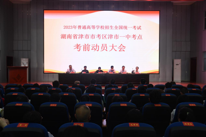 6月6日,津市市2023届高考考前动员大会在津市市第一中学多功能报告厅召开。会议由津市市教育局党委书记、局长钟柯主持,常德市教育局党组成员丁春秋、津市市政府党组成员易榕出席会议并讲话。