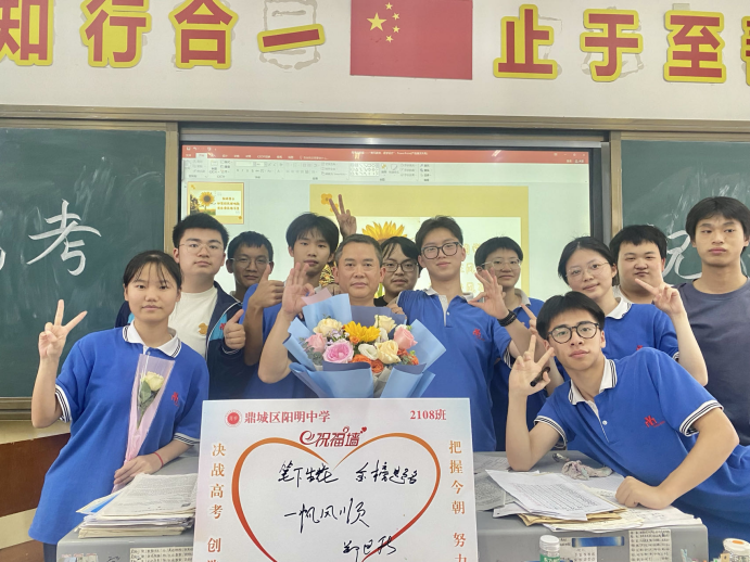 活动在温馨的班级合影留念中进入尾声。此次活动不仅为高三学子们带来了温暖与力量,也展现了阳明中学全校师生团结一心、共同为高考努力的精神风貌。相信在这份祝福与鼓励的加持下,阳明中学的高三学子定能在高考的舞台上乘风踏浪,逐梦远方。