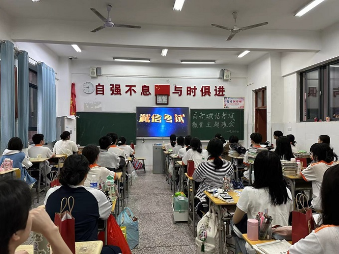 高考在即,为了让学生诚信考试,湖南省湘北职业中专学校于2024年6月4日晚举行了诚信考试暨安全教育大会。