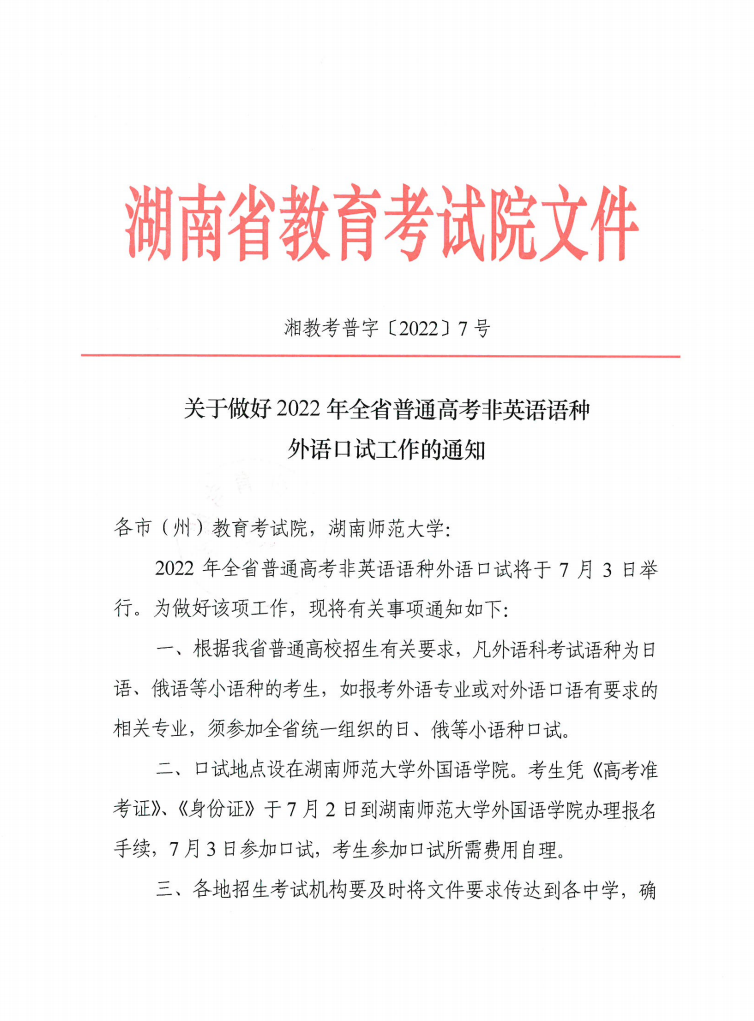 关于做好2022年全省普通高考非英语语种外语口试工作的通知