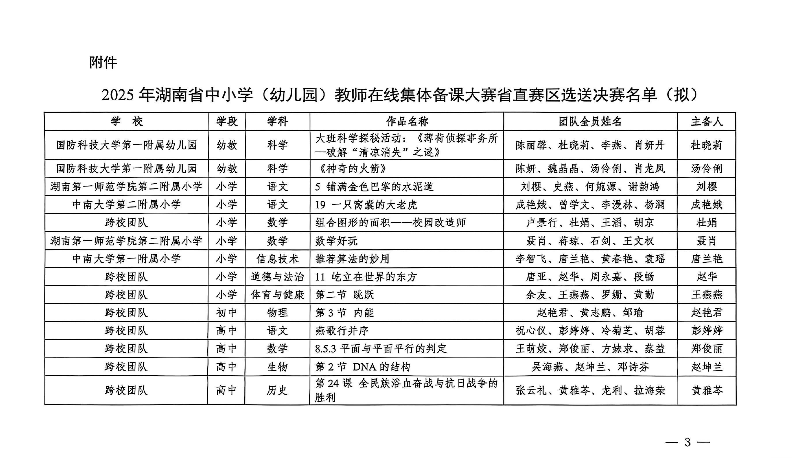 附件:2025年湖南省中小学(幼儿园)教师在线集体备课大赛省直赛区选送决赛名单(拟)