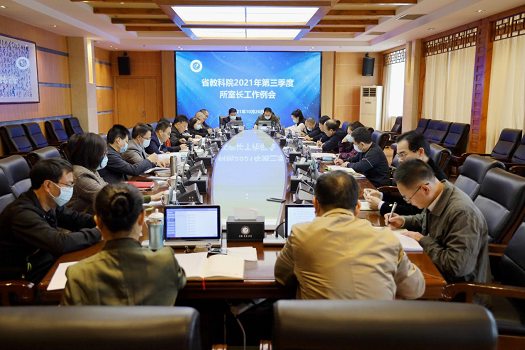 10月26日,省教科院召开2021年第三季度所室长工作例会,总结三季度工作成绩,部署下阶段工作安排,院领导班子成员、各所室(处)主要负责人和党支部书记参加会议。
