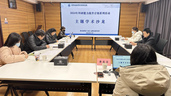 1月19日上午,省教科院职成所第三期主题学术沙龙在院八楼会议室顺利举行。本期学术沙龙的主题是提升课题申报能力,邀请了湖南机电职业技术学院教授、全国黄炎培职业教育杰出教师、湖南省芙蓉计划教学名师黄亚宇作专题讲座。学术沙龙由职成所副所长李琼主持,王江清副院长出席,职成所全体人员参加。