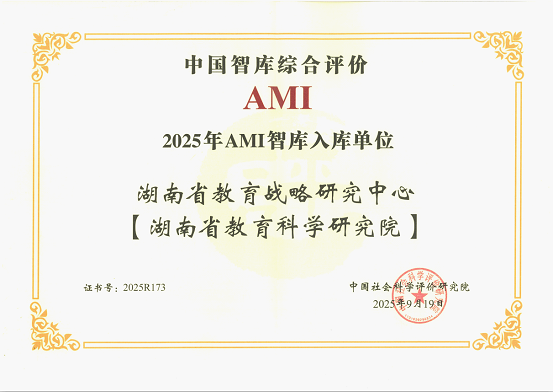 近日,由中国社会科学评价研究院组织评选的“中国智库综合评价研究项目(2025)AMI智库”正式公布入库名单,我院智库湖南省教育战略研究中心成功入选。