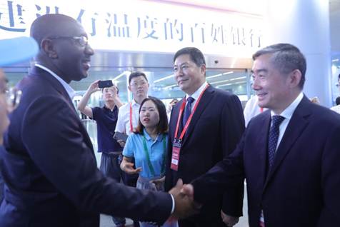 蒋昌忠与科特迪瓦中小企业部部长苏莱曼·迪亚拉苏巴亲切握手