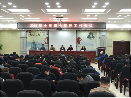 杨庆江副局长讲话指出,在“十三五”期间,我市职业教育应抢抓发展机遇、找准定位、建立创新创业体系、扭转社会视角; 各职业院校必须建立起人才培养质量保障机系,要准确把握现代职业教育的发展思路,更加注重提升发展质量、适应产业转型及改革创新,全面推进现代职业教育转型发展、融合发展和健康发展,全面推动现代职业教育体系建设。