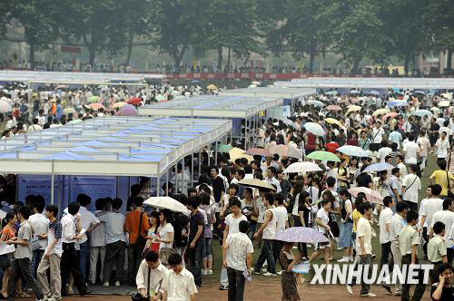 新华网北京7月19日电 2008年以来,在金融危机的冲击下,我国大学毕业生就业面临严峻挑战。“10年寒窗苦,一朝就业难”,让很多莘莘学子心急如焚。对此,从中央到地方,各级政府和有关部门对此高度重视,十分关心,不断采取有效措施,化解难题,排忧解困。据了解,2009年的600多万应届高校毕业生中,已有415万人的工作有了着落,就业率达68%。 新华社记者近日走访部分地区,发现应对和解决大学生就业这个广受社会关注的焦点问题,各地结合自己的实情,出台了不少“高招”,也显示出良好效果。 重庆:10项举措确保大学生就业率实现81% 重庆市教委主任彭智勇告诉记者,如此高的就业率,得益于重庆市政府的“十项举措”。 据彭智勇介绍,重庆市首先出台政策,加大“重庆市农村乡镇人才队伍建设计划”实施力度,使到基层就业毕业生总数由去年的4000多人扩大到7000多人。设立创业基金也是重庆市政府鼓励大学生就业的新举措。目前,重庆市已设立1亿元的大中专毕业生创业基金,鼓励支持大学生自主创业。此外,重庆市还出台举措鼓励高校毕业生应征入伍。目前,2009年入伍预征人数已达到1500人左右,约占毕业生总数的1.1%。 为向大学生提供更多就业岗位,重庆市政府在企业、高校、科研单位中分别推进三项举措:一是实施国有大中型企业人才储备计划。国有大中型企业2009年吸纳高校毕业生的数量比2008年增加一倍,达到1.3万人;二是鼓励中小企业和民营企业吸纳高校毕业生。对吸纳高校毕业生达到一定数量的中小企业和民营企业,由政府给予一次性补贴或贷款贴息;三是鼓励高校、科研单位按职工总数的5%左右聘用高校毕业生从事助研、助管、助教等工作,2009年聘用3000人左右。 湖北省举办大学生就业服务月专场招聘活动,为应聘大学生提供近2万个就业岗位(6月7日摄)。新华社记者 皮曙初 摄 湖北:以就业服务引路,鼓励高校毕业生面向基层 今年,湖北高校毕业生达36.76万人,居全国前列。湖北省委、省政府将6月定为“湖北省大学生就业服务月”。服务月期间,全省各地为大学毕业生提供就业岗位信息达12万个。 湖北还以就业服务引路,鼓励高校毕业生面向基层。今年,湖北招募4500多名高校毕业生到乡镇从事支教、支农、支医和扶贫工作。湖北已选派8059人在岗从事“三支一扶”工作,为新农村建设增加了人才智力保障。 同时,湖北继续开展“农村教师资助行动计划”,选派3800多名资教生赴各县市的农村中小学任教。自2004年此项计划开展以来,湖北共选派了8798名优秀本科毕业生,分赴794个乡镇的1300多所农村学校。今年秋季开学时,湖北将有上万名资教生工作在农村基础教育的第一线,每27名农村义务教育阶段学校专任教师中就有1名资教生。 天津:多渠道开发岗位,千方百计助大学生就业 据统计,今年天津应届高校毕业生超过11万人,加上历届未就业毕业生,需择业大学生人数创历史新高。面对严峻的就业形势,天津市把大学生就业工作摆在突出位置,制定出台了促进高校毕业生就业的20条政策措施,并积极推动落实,取得了一定成效。 天津市结合自身经济社会发展特点以及滨海新区开发开放需要,深挖社会就业潜力,大力拓宽就业渠道,除鼓励高校毕业生到城乡基层、中西部地区和中小企业就业,自主创业,鼓励骨干企业和科研单位吸纳高校毕业生外,把大项目好项目作为吸纳高校毕业生就业的重要载体,在规划和建设重大项目的同时,努力推进高校毕业生就业。 据统计,天津市已建和在建的重大项目,可提供6万多个就业岗位。截至目前,天津市已与289个重点项目签订用工和就业服务协议,提供适合高校毕业生就业的岗位达1.8万个。