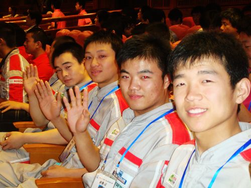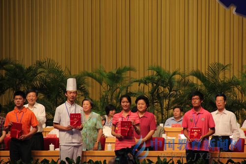 2010年全国职业院校技能大赛闭幕式举行颁奖典礼。中国教育新闻网 杨楠摄 中国教育新闻网天津6月27日讯 今天上午,2010年全国职业院校技能大赛于天津市大礼堂举行闭幕式。中共中央政治局委员、国务委员刘延东,天津市委书记张高丽,全国政协副主席、民建中央第一副主席张榕明,教育部部长袁贵仁,科技部党组书记、副部长李学勇,天津市市长黄兴国,全国人大常委、全国人大教科文卫委员会委员吴启迪,人力资源和社会保障部副部长张小建等出席。闭幕式由教育部副部长鲁昕主持。闭幕式上,领导及嘉宾为2010年全国职业院校技能大赛获奖选手颁奖。 全国职业院校技能大赛在天津已连续举办3届,本届是迄今为止规模最大、活动内容最为丰富的一届。特别值得一提的是今年中、高职有10个项目列入国家级职业技能大赛系列,并颁发相应的职业资格证书。部分参加大赛的选手通过此次大赛实现了“三证”在手,即:大赛证书、劳动部颁发的职业资格证书及毕业证书(应届中、职毕业生)。 大赛组委会负责人说,本届大赛体现了德技并重、校企结合和中外交流几大特色,充分展示了职业教育改革发展的丰硕成果,集中展现了职业院校师生的风采。大赛最后决出一等奖436名,二等奖883名,三等奖1280名,优秀奖1268名。此外,大赛组委会还评选出优秀指导教师奖378个、中职组团体奖9个、企业突出贡献奖14个。2010年06月28日 08:102010年06月28日 08:10 广西烹饪学校的学生(左一,左三)获得中职组热菜比赛一等奖。图为获奖学生和他们的指导老师。中国教育新闻网 龚萍 来自重庆旅游学校的杨秋获得中职烹饪项目一等奖。中国教育新闻网 龚萍 北京交通运输职业学院参加汽车运用与维修项目的参赛选手在闭幕式现场。中国教育新闻网 龚萍 |