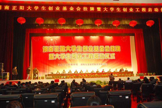 湖南人文科技学院联合湖南九龙经贸集团成立了湖南省高校首家大学生创业基金会——湖南正阳大学生创业基金会。12月16日,该基金会举办了挂牌庆典。原湖南省人大常委会副主任、省人民政府顾问唐之享,湖南省教育厅党组成员、副厅长申纪云等有关省直单位领导,湖南人文科技学院党委书记、湖南正阳大学生创业基金会理事长柏连阳和娄底市有关领导及部分企业、高校代表,湖南人文科技学院师生代表近2000人出席了庆典仪式。