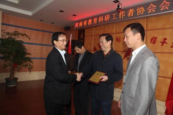 省教育厅党组成员、省教育科学研究院院长、省教育科研工作者协会会长姜正国为副会长、秘书长颁发证书。