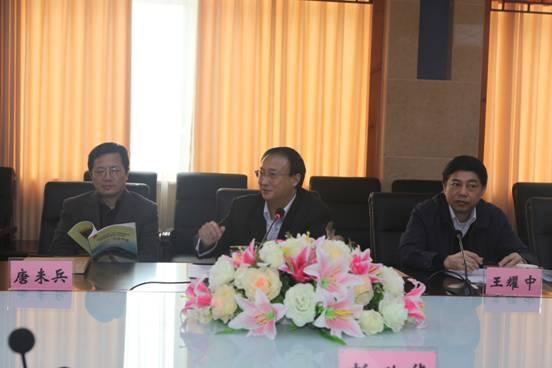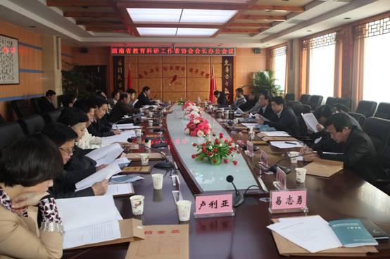 省教育厅党组成员、省教育科学研究院院长、省教育科研工作者协会会长姜正国(中)在办公会上发表讲话。长沙理工大学党委书记、省教育科研工作者协会副会长王耀中(右)主持会议。