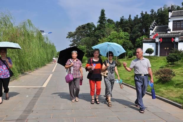 走入关山村,首先映入眼帘的是一洼晶莹温润的湖水。在湖岸的两侧,一排排整齐划一而又错落有致的特色民居依山而建,显得格外恢弘大气,极具视觉冲击力,老同志们发出阵阵赞叹,“果然名不虚传,好一个世外桃源”。走近村落,才发现每家每户的门梁、楹联又不尽相同,甚至窗格的雕花、墙头的水墨版画都各具特色,将徽派建筑“青砖小瓦马头墙,回廊挂落花格窗”的清新典雅风格展露无遗。层楼叠院,独门单栋,粉面黛盖,清澈的湖面波光粼粼,将整个关山村倒映在水中。曲径回廊,翠竹偎依,稻花含香,依依的杨柳曼妙绰约,让老同志们如置画中,流连忘返。