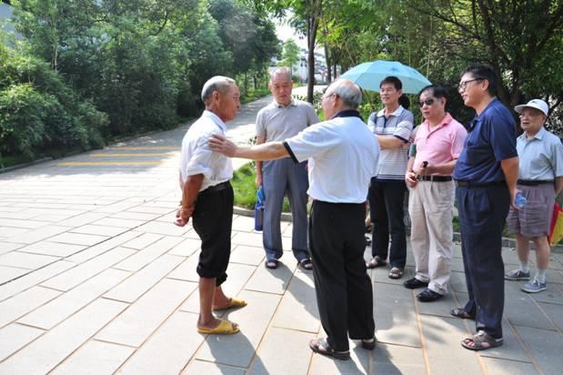 老同志们与关山村村民热情攀谈。