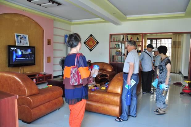 “欢迎你们,进来坐一坐吧”。隔着老远,老同志就感受到了村民的热情好客。一杯沁香扑鼻的黑豆茶,一碟自己晾晒的南瓜子,老同志们和村民们拉开了话匣子:“你们家的房子有多大?”“家里有几口人?”“有几个小孩?”“家庭负担重不重?”在得知关山村仅在短短五年时间内,遵循“依托长沙近郊优势,发展休闲旅游业”的思路,创新土地集约开发模式,积极转变发展思路,因地制宜发挥优势,打造特色农业片区,大力发展村级文化事业,创建精品休闲品牌,建设了以民居观光、民俗博览和新农村建设成就展示为主要内容的乡村文化旅游区,成为拉动关山村经济的新增长点。仅去年一年,关山村就实现总产值3.37亿元,农民人均纯收入达到了1.54万元,建设了葡萄、茶叶、四季水果、无公害蔬菜、畜牧和水产养殖基地,全村2660多村民享受到了安居、社保、租金、门面、就业等实实在在的保障。“真不容易,真不简单,真了不起!”语言虽然质朴,感情却非常真挚,对关山村的发展和蝶变,老同志们毫不吝惜自己的溢美之辞。