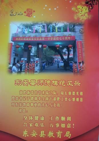 近日,东安县教育局印制的一副题为《东安县师德模范风采》的2013年度挂历,引起了省教育厅党组书记、厅长王柯敏的高度重视。他专门做出批示,指出东安县教育局的做法很好,应予宣传报道。