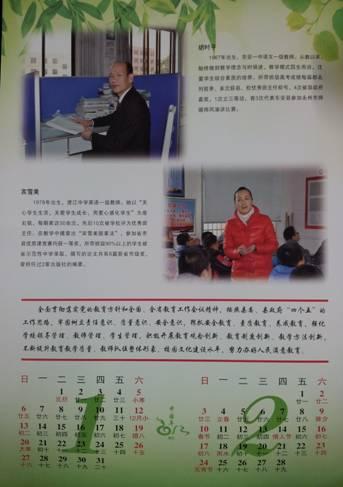 东安县教育局印制的《东安县师德模范风采》挂历,用6个版面图文并茂地介绍了东安县12位师德模范的先进事迹。在每个版面的图片下方,还用精炼的语言介绍了东安县教育局全面贯彻落实党的教育方针,促进当地教育事业发展的基本理念、工作思路等内容。整幅挂历以突出当地教育工作为主题,以弘扬教师高尚师德为主线,主题鲜明,重点突出,有效地创新了教育工作宣传形式,拓展了教育宣传平台。
