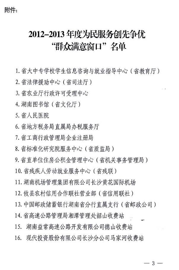 为民服务创先争优“群众满意窗口”评选工作从2012年起开始实施,面向省直具有窗口特点和服务职能的单位开展评比。通过各单位自评申报、考评组现场暗访、群众测评、公示等环节,共16家单位获评2012-2013年度为民服务创先争优“群众满意窗口”称号。