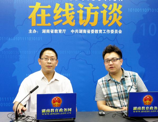 长沙师范学院副院长皮军功(图左)做客湖南教育政务网在线访谈。 摄影/王辉