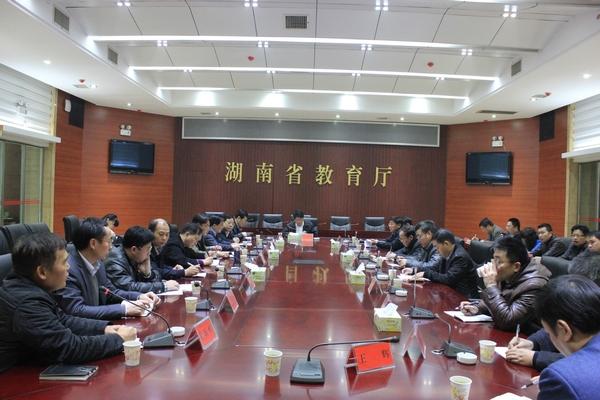 为贯彻落实十八届三中全会精神,深入推进我省普通高等学校章程建设,加快建设现代大学制度,我厅12月12日上午在厅机关二楼会议室召开了部分高校章程建设推进研讨会,厅党组副书记、省委教育工委副书记、副厅长肖国安在会议上作了讲话。会议由厅政策法规处处长吴跃辉主持,湖南师范大学、湘潭大学、湖南农业大学、中南林业科技大学、湖南省中医药大学、长沙理工大学、吉首大学、怀化学院、湖南工业职业技术学院、湖南省现代物流职业技术学院、湖南涉外经济学院、湖南文理学院、邵阳学院、湖南科技大学等14所试点高校的主管校领导和部门负责人参加了会议。