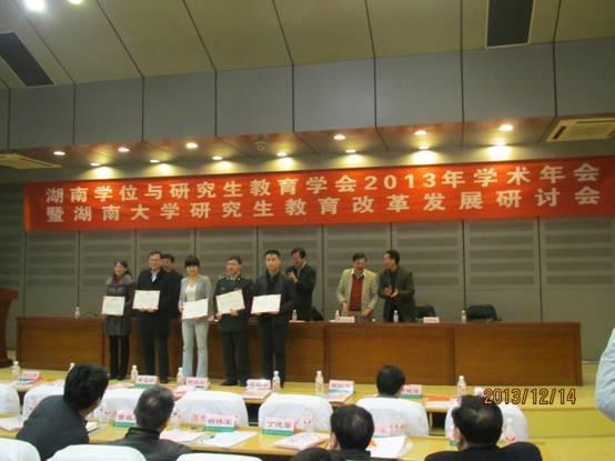 湖南省学位与研究生教育学会于1992年成立,2004年正式成为省一级学会。学会每年面向全省学科建设、学位与研究生教育工作者和研究生积极征集论文,收录我省在学位与研究生教育上取得的新成果、新经验、新体会。为确保论文质量,学会组织专家对论文进行评审。本次共收到论文156篇,其中10篇论文被评为优秀论文,优秀论文名单在学术年会开幕式上宣读,并颁发获奖证书。经专家评审,有87篇论文已收录在《研究生教育论坛(2012)》上。(文\朱费伽)