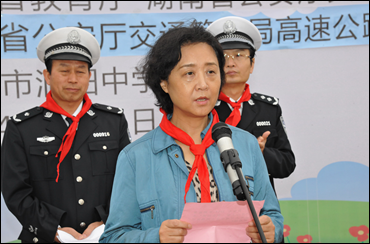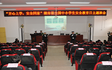在浏阳市洞阳中学,省公安厅交管局局长唐国栋,省教育厅副巡视员贺安溪,省公安厅交管局副局长贺健钧,高支队支队长欧阳纲良,省教育厅基教处副处长张毅龙,参加了“开心上学、安全回家”主题班会,与学生互动,观看交通安全教育警示片《为了悲剧不再发生》,听交警讲解高速公路交通标志标牌、安全乘车常识、常见交通违法行为、行人上高速的危害等知识。