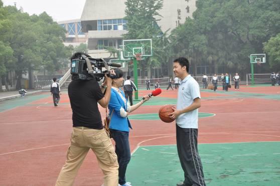 爱好运动的郭阳观,在学校操场接受媒体采访。