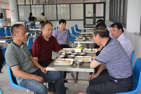 专家组成员利用食堂就餐时间与教育部门的同志深入交流情况。