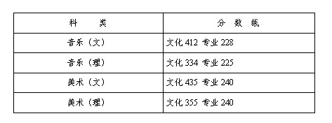 2014年本科提前批我省省属院校艺术类专业 及湖南大学和中南大学美术类专业录取控制分数线