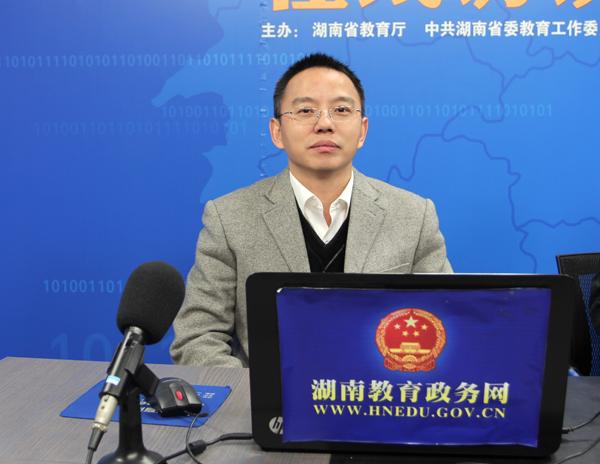 省委教育工委维稳办主任刘静接受湖南教育政务网在线访谈。 摄影/王辉