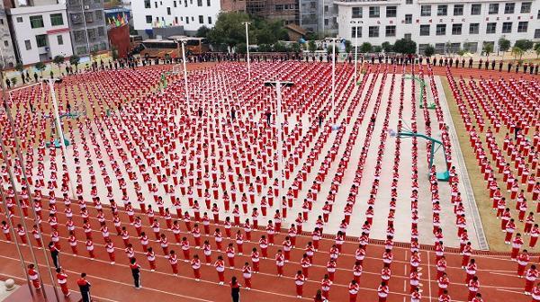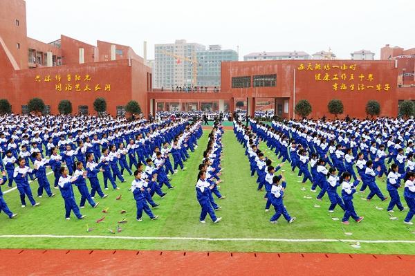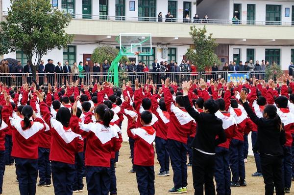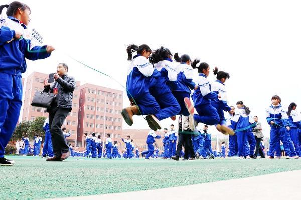 与会人员现场观摩了军山中小、城关中小、思源实验学校等三所学校阳光体育大课间活动开展情况,深感震撼,被形式多样、全员参与、寓教于乐的阳光体育运动深深吸引。从2007年开始,安仁县推行了以“六个一”为主要形式的阳光体育运动,即学生一人一器具、一天一小时、学校一月一竞赛,一季一主题、一期一测试、全县一年一盛会。在学校现有体育器材的基础上,学生可根据自身兴趣爱好,自带跳绳、毽子、皮筋、铁环等简易器材,参加学校每天统一安排的30至40分钟的大课间体育活动和文体活动。学校每个月举行一次全校的单项体育竞赛活动,一个季度确定一个主题,并围绕主题安排内容,使大课间活动生动活泼,形成校园内一道独特风景,学生参与的积极性和主动性都非常高。